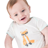 Short sleeve breathable bamboo onesie featuring a foxy fox. Quick drying and temperature regulating bamboo ensure a comfortable play and sleep. This item can be used as an under layer in cooler months. Fabulous for summer use as it is super soft and comfy, yet feels barely there!